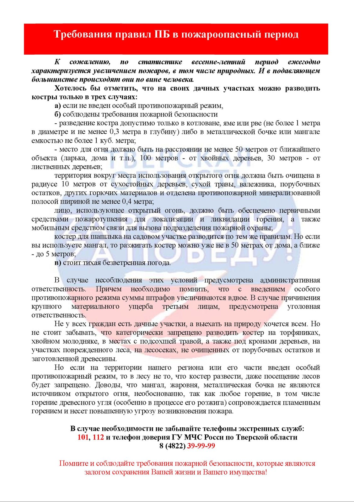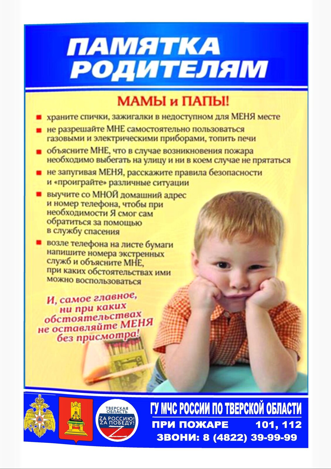 При возникновении ЧС, аварий и происшествий немедленно информировать по телефонам: 112