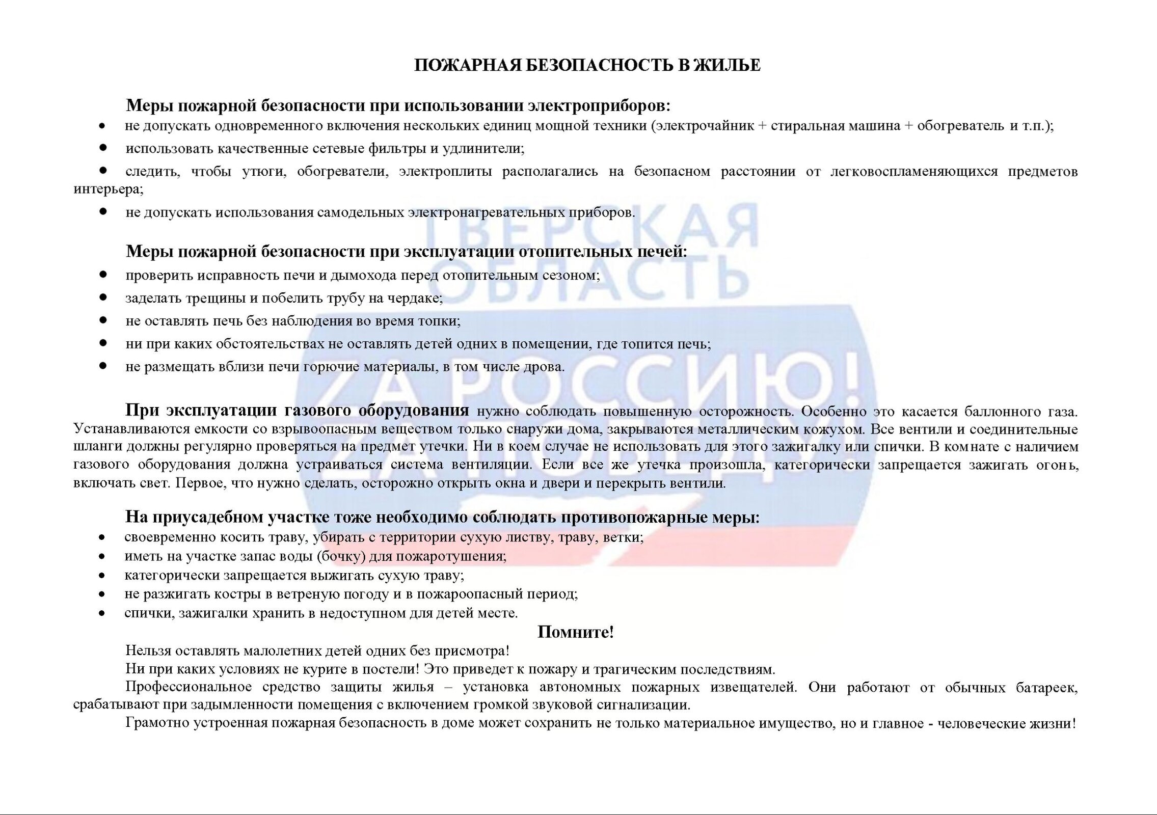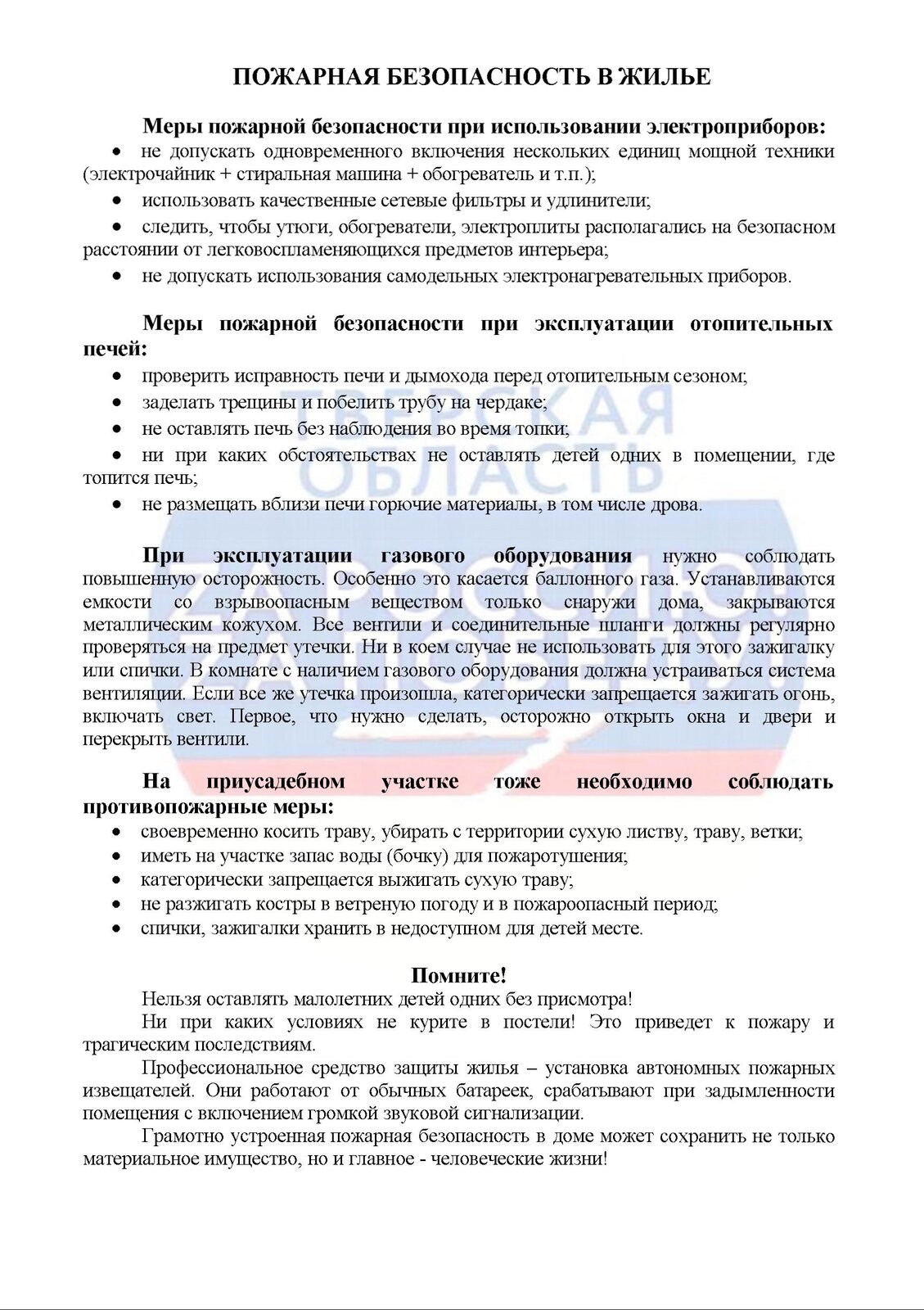 С целью предупреждения утраты и порчи имущества, недопущения несчастных случаев жителям необходимо принять следующие меры: