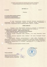 Приказ о создании общественой комиссии по контролю за организацией и качеством питания